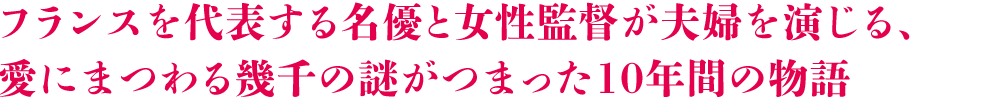 トニーには、監督としても高く評価されるエマニュエル・ベルコ。第68回カンヌ国際映画祭で、『太陽のめざめ』で女性監督として史上2度目のオープニング上映を飾り話題となった。恋の喜びと愛の不安に激しく揺れながらも、自分を取り戻そうともがくトニーに全存在をかけて扮し、カンヌ国際映画祭で見事に女優賞に輝いた。